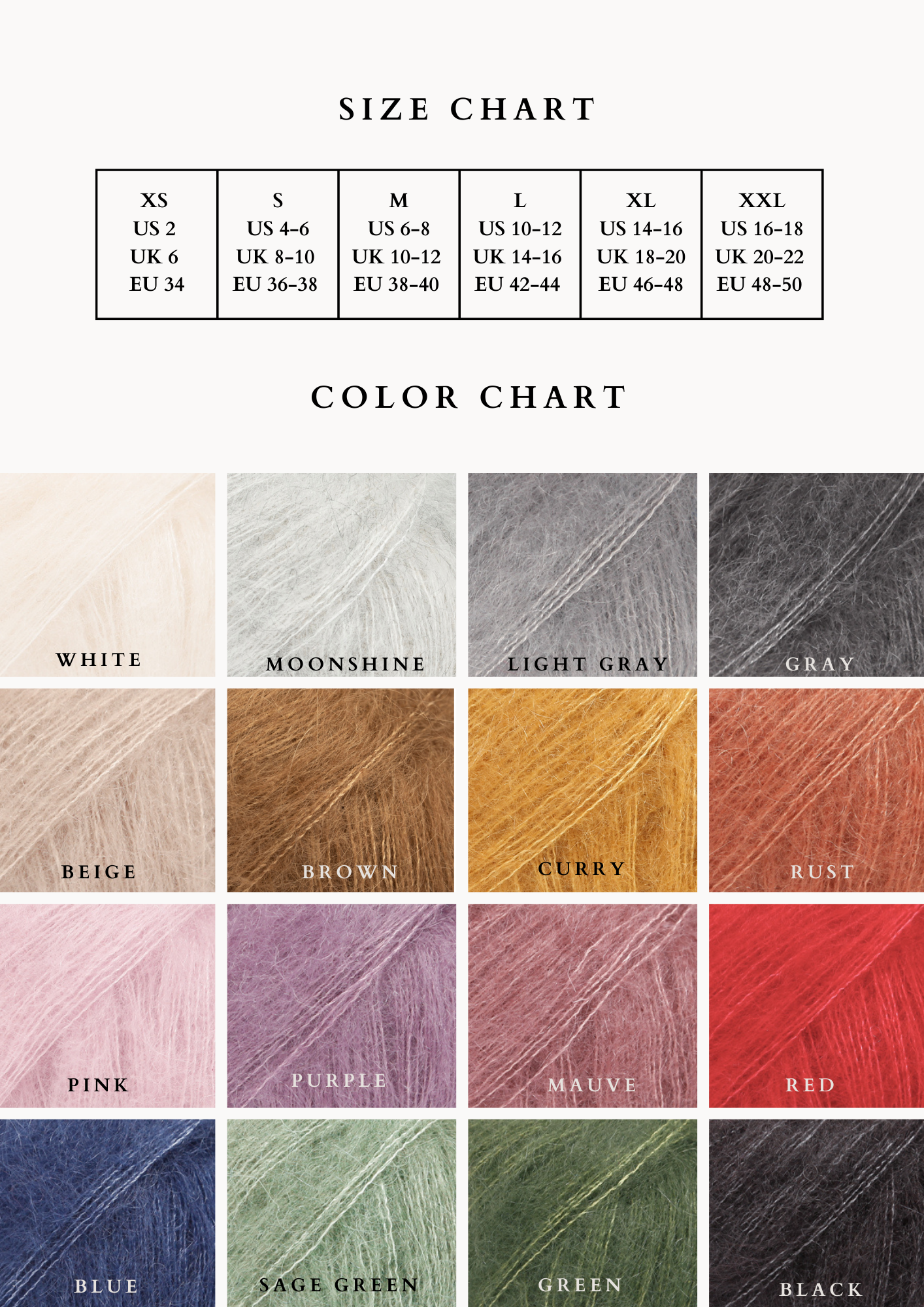 - Composition: Alpaca wool, Lambswool, Mohair, Silk. No synthetic blends, for you and the environment.