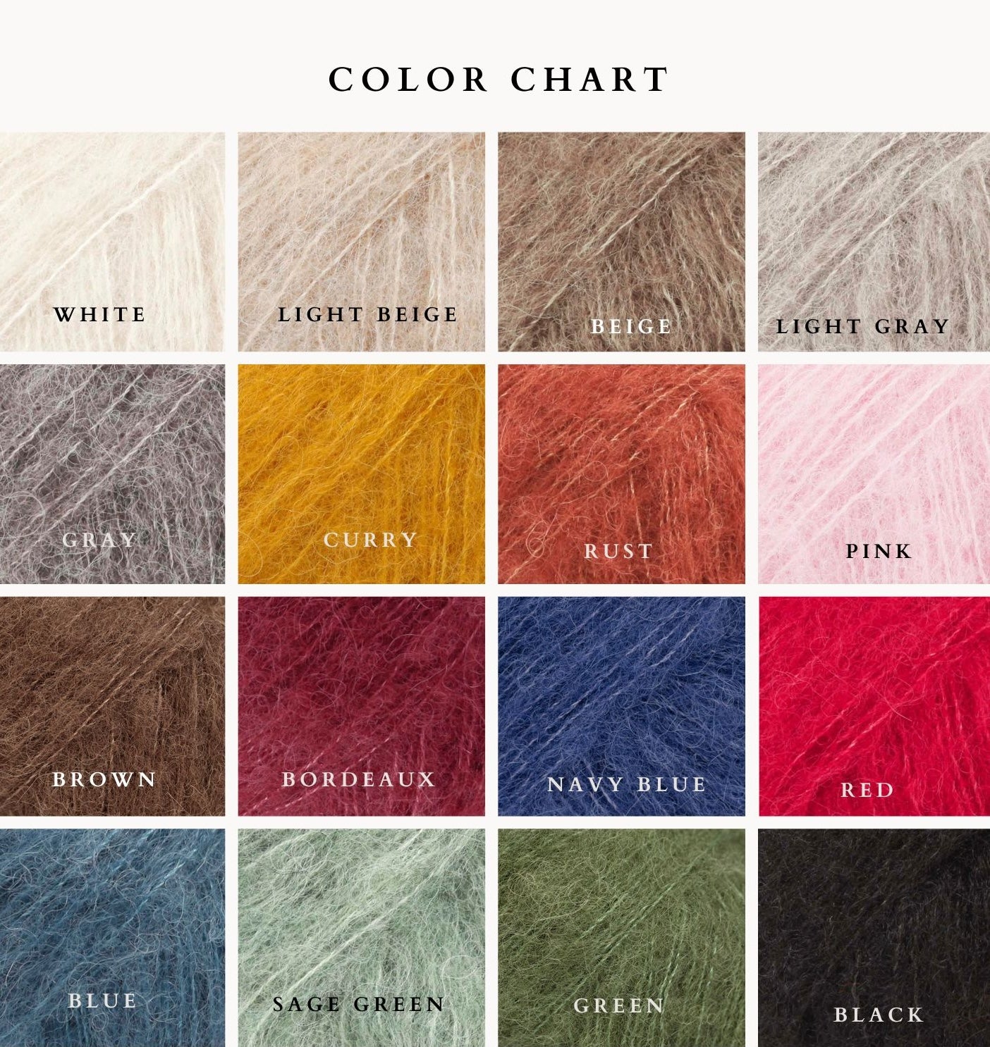- Be aware that each knit's measurements may vary slightly because of the yarns' nature. Also, as displays and browsers can display colors differently, the shades may appear differently than they do in reality.